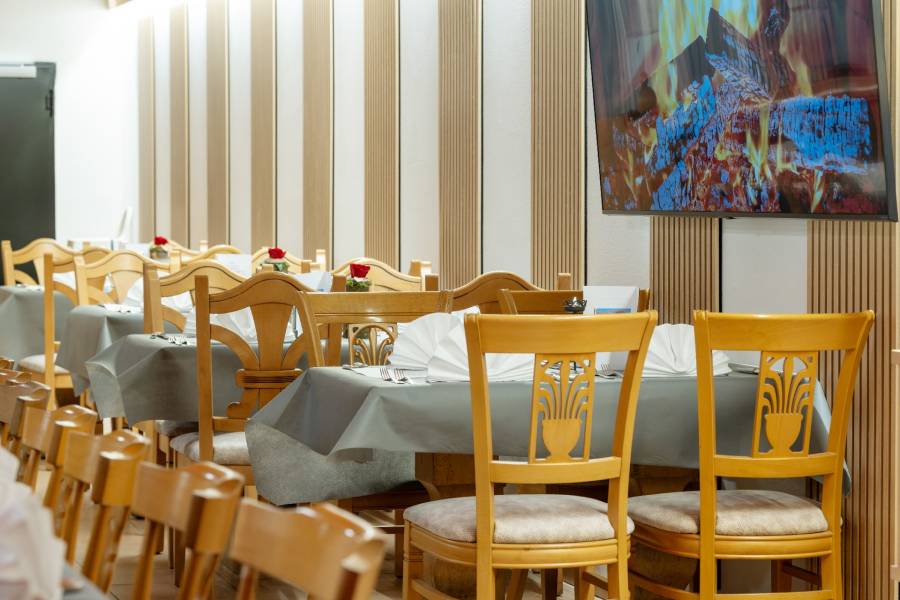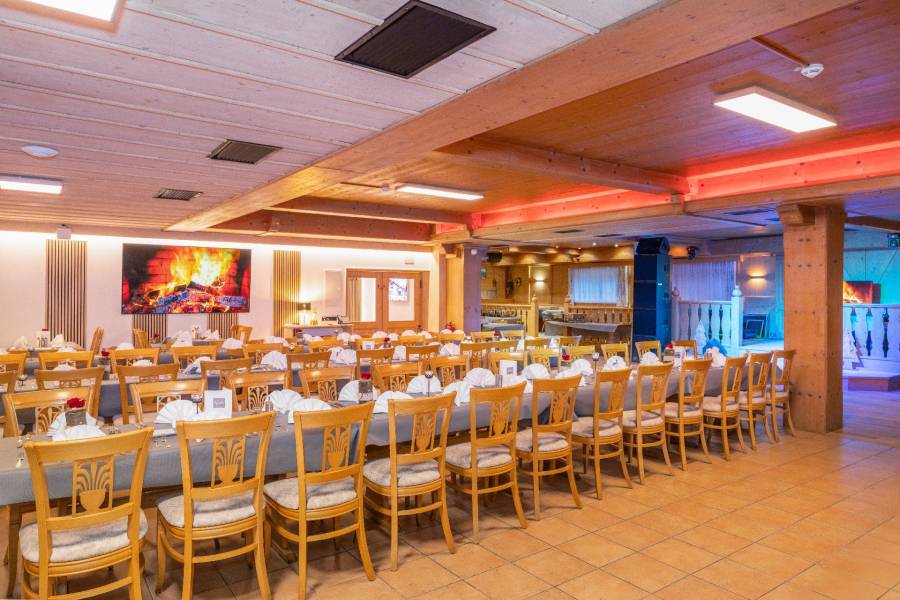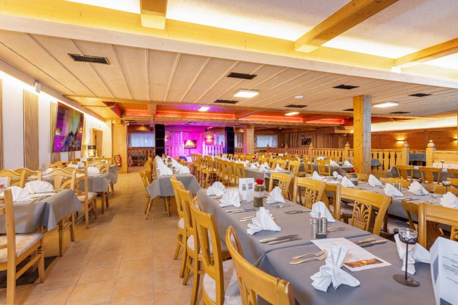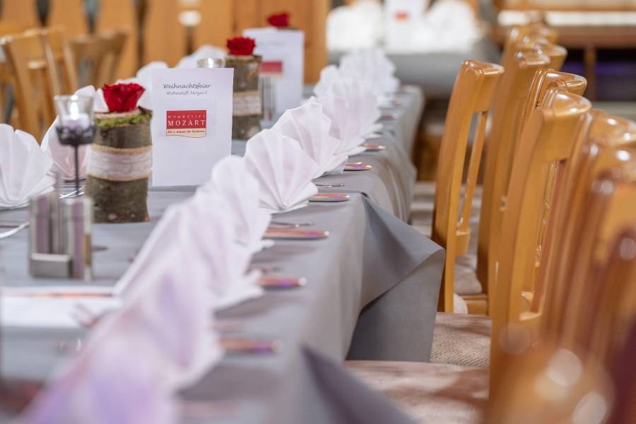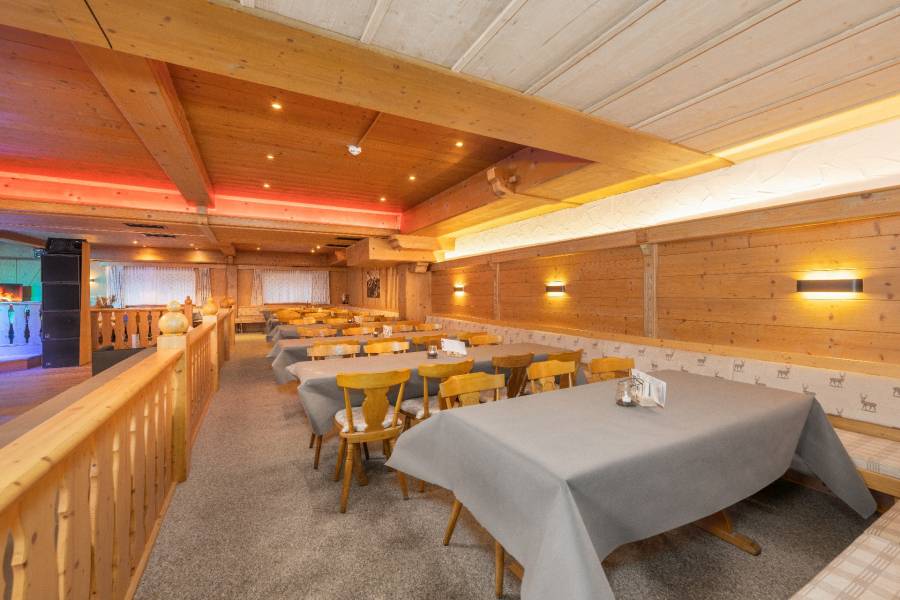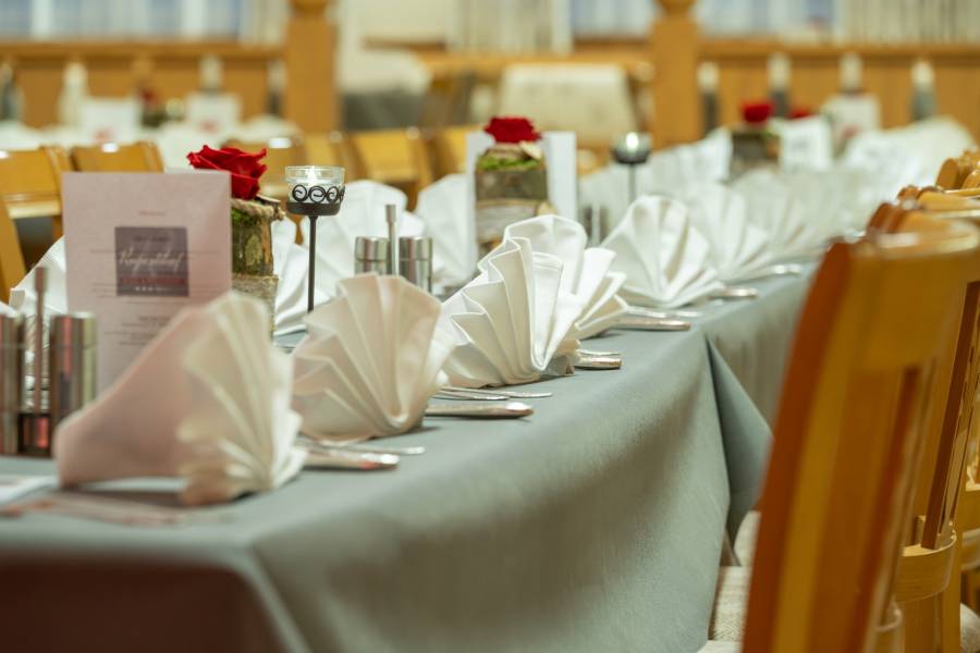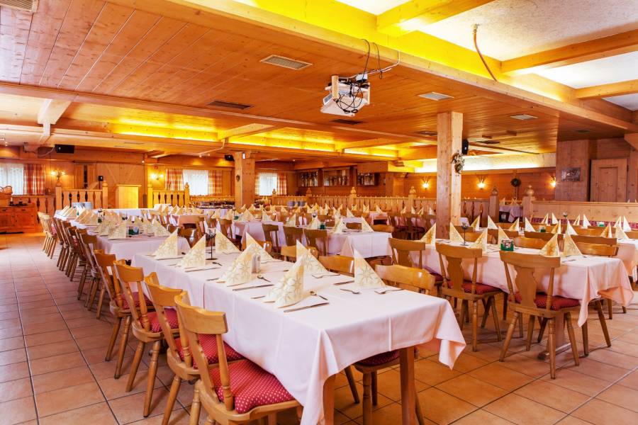 Die Räumlichkeit wurde mit viel Holz, warmen Materialien und traditionellen Elementen gestaltet, was dem großen Saal trotz seiner Größe eine gemütliche und einladende Note verleiht. Diese Kombination aus professioneller Eventausstattung und behaglicher Gestaltung macht den Raum nicht nur funktional, sondern auch atmosphärisch einzigartig.